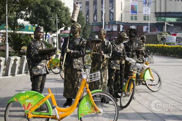 他們是株洲職工大學(xué)(工業(yè)學(xué)校)大一的學(xué)生,希望通過這些古代造型與現(xiàn)代自行車的對比,讓大家注意到愛護公共財物也是學(xué)習(xí)雷鋒。