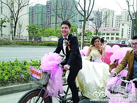 上一個(gè)雙休日,住在蘇州工業(yè)園區(qū)中海國(guó)際社區(qū)的網(wǎng)友“繆繆ssweetheart”因?yàn)橐粡埢槎Y圖片,而在微博上引來了“圍觀”,原因不僅是新郎新娘的婚車用上了三輪車,而且連送親的隊(duì)伍每人都騎上了一輛綠色的公共自行車。這場(chǎng)綠色、低碳、環(huán)保的婚禮不僅踐行了“綠色出行”的理念,同時(shí)他們這一創(chuàng)新的婚禮形式也成為朋友間的時(shí)尚美談。