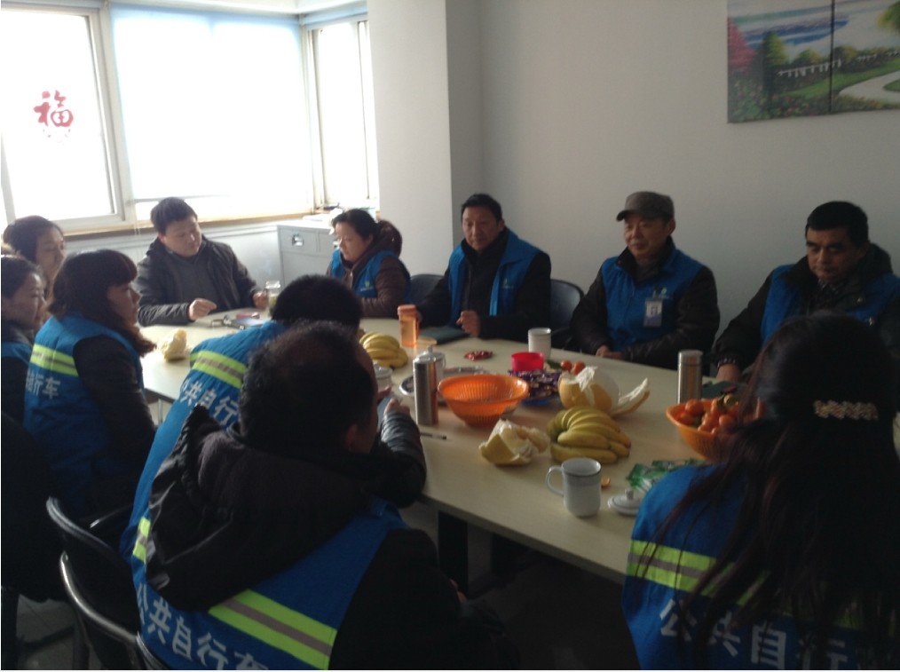 蘇州公共自行車管理中心于2014.02.08.在高新區(qū)百合花公寓會議室舉行了新春茶話會。蘇州公共自行車公司總經理首先在茶話會上發(fā)表新春致詞:祝大家新春快樂、身體健康、萬事如意。希望全體員工在新的一年里加倍努力,再創(chuàng)佳績!并介紹了新人事給在座的各位同事。