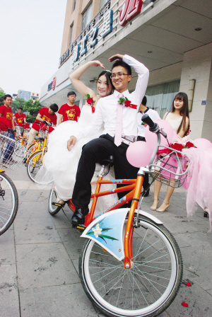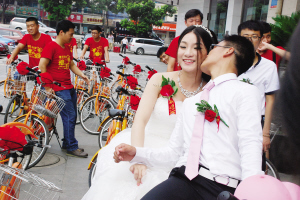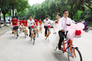 “我父母都覺(jué)得用汽車好,擔(dān)心公共自行車太寒酸?!毙”R的父母想給兒子一個(gè)體面的婚禮,打算借幾輛寶馬,一排寶馬開出去,覺(jué)得很氣派。但小盧覺(jué)得還是公共自行車好,環(huán)保、低碳又浪漫,關(guān)鍵這樣的婚禮在吳江還是首次,肯定很難忘。