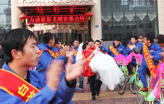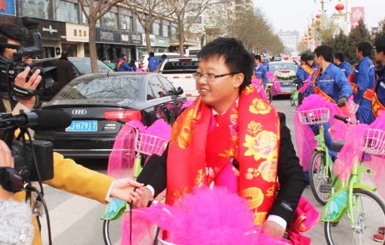 公共自行車作為一種無(wú)污染的綠色交通方式,不僅僅為市民節(jié)省不少開(kāi)銷,更為綠色出行添上浪漫的色彩,越來(lái)越多的市民選擇騎公共自行車出行。不久之前,靖邊延長(zhǎng)石油集團(tuán)的一名員工,就為自己舉辦了一場(chǎng)低碳環(huán)保又不失浪漫時(shí)尚的自行車婚禮。婚禮當(dāng)天,由靖邊縣市政管理所免費(fèi)提供的40輛公共自行車組成了這次婚禮的“豪華”車隊(duì),身穿禮服的新郎在親友的祝福下,騎著自行車迎娶他美麗的新娘。選擇自行車車隊(duì)迎親的方式,新穎環(huán)保而且經(jīng)濟(jì)實(shí)惠,亦不失浪漫,這次簡(jiǎn)單浪漫的自行車婚禮是對(duì)公共自行車綠色出行的認(rèn)可,更是對(duì)低碳環(huán)保生活方式的提倡和實(shí)踐。