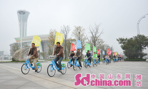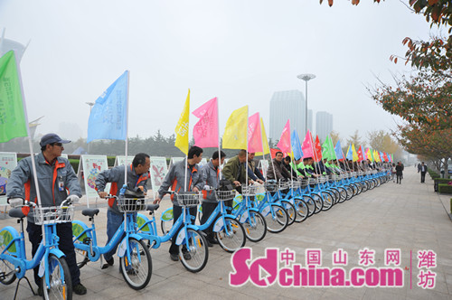 中國山東網(wǎng)濰坊頻道11月1日訊 濰坊公共自行車項目自去年11月1日正式運營以來,至今已一年時間。為讓更多人選擇公共自行車出行方式,今日上午,濰坊市市政局舉行“慶祝濰坊公共自行車運行一周年騎行活動”,并為全市騎行數(shù)量最多和騎行時間最長,以及第一名辦卡的市民頒獎,其中騎行時間最長的市民共計騎行58451分鐘,即平均每天騎行兩個半小時以上。